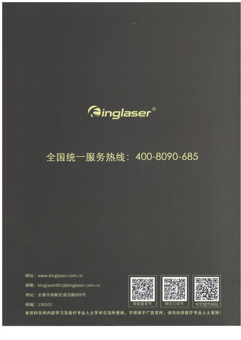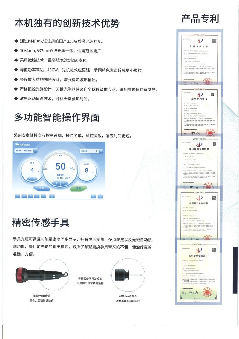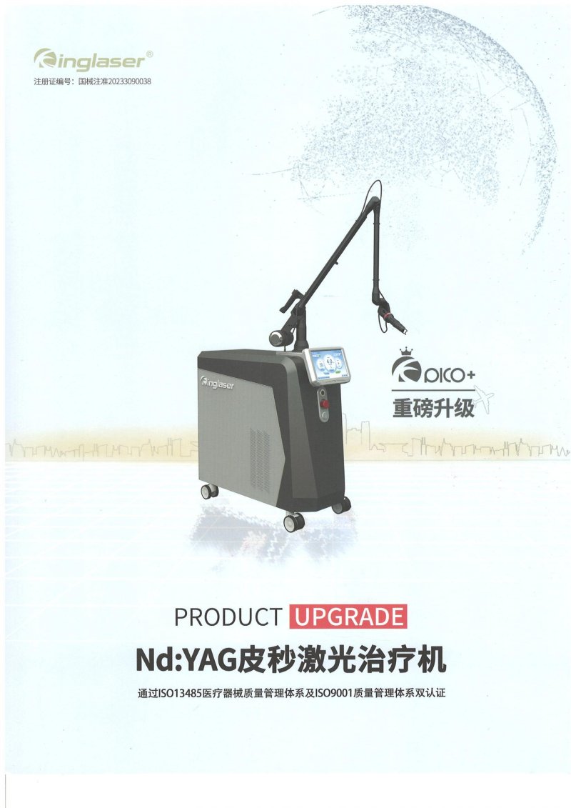 注册证编号:国械注准20233090038生产厂家:吉林省科英医疗激光有限责任公司适应症:1064nm波长用于治疗蓝黑色文身,532nm波长用于治疗良性表皮色素增加性疾病,在医疗机构中使用。